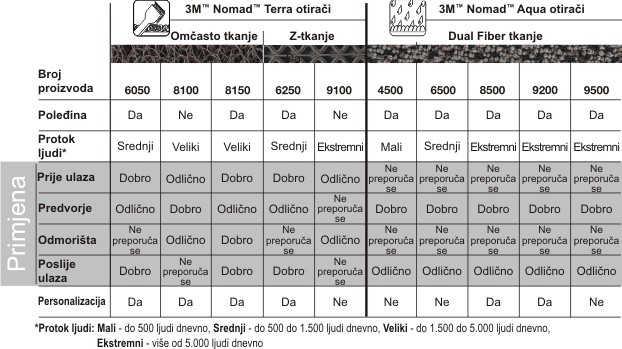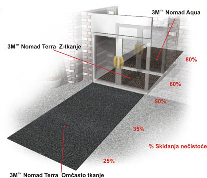 Postavljanjem sistema 3M™ Nomad™ otirača u optimalnoj dužini, u mogućnosti ste ukloniti do 80% nečistoće sa obuće prilikom ulaza u zgradu.